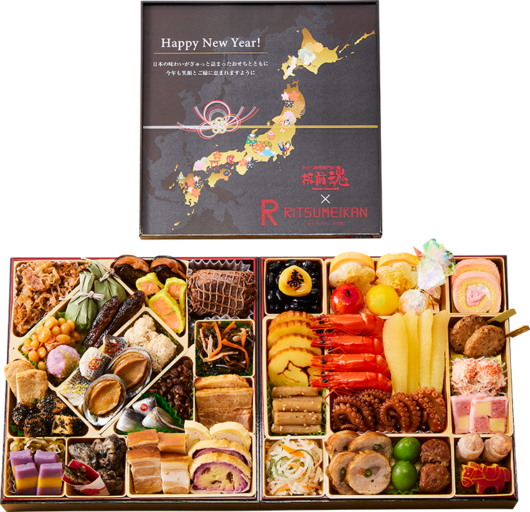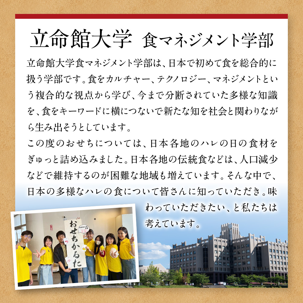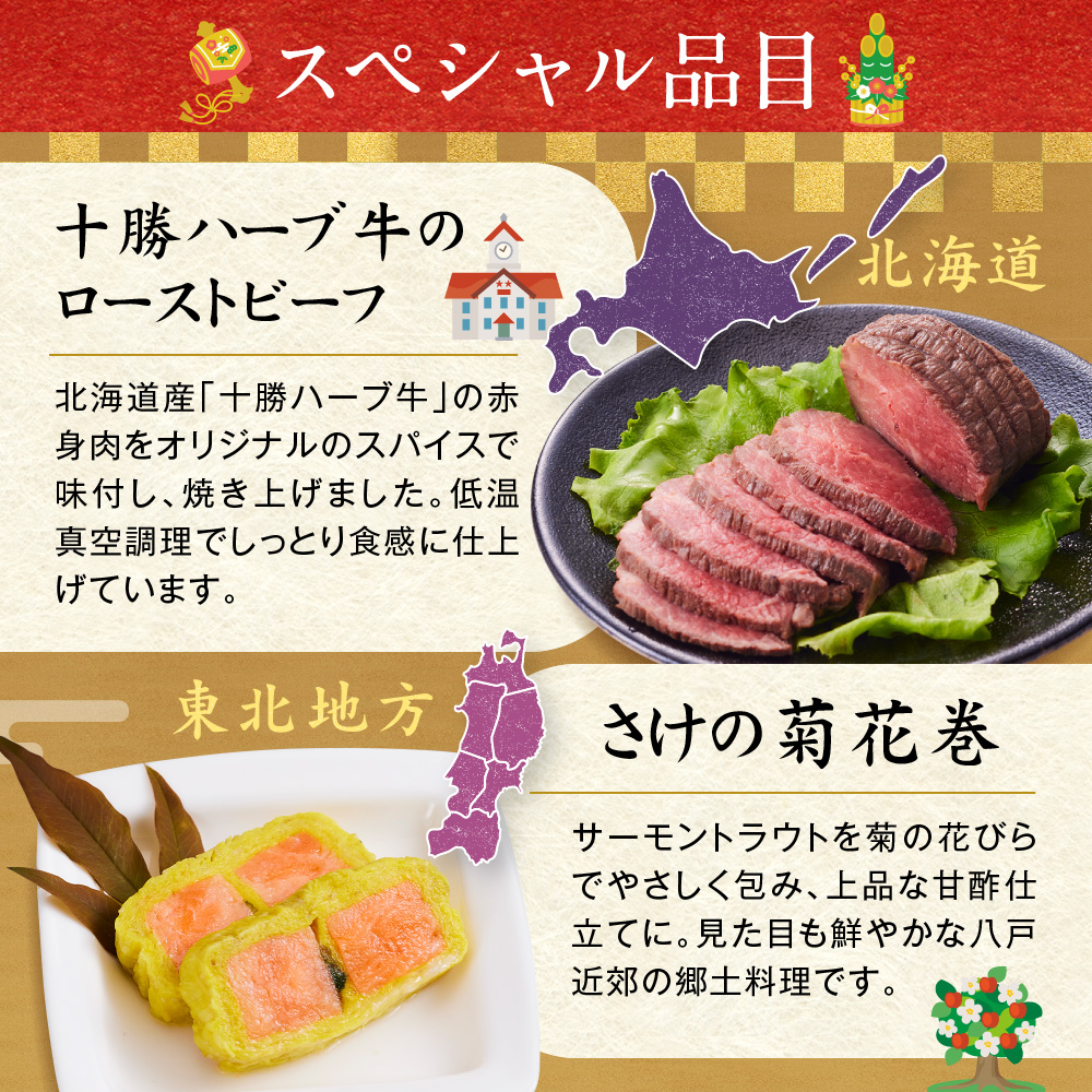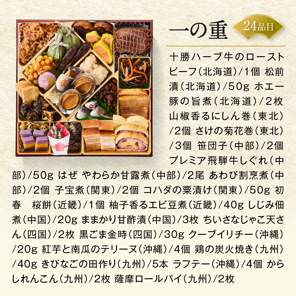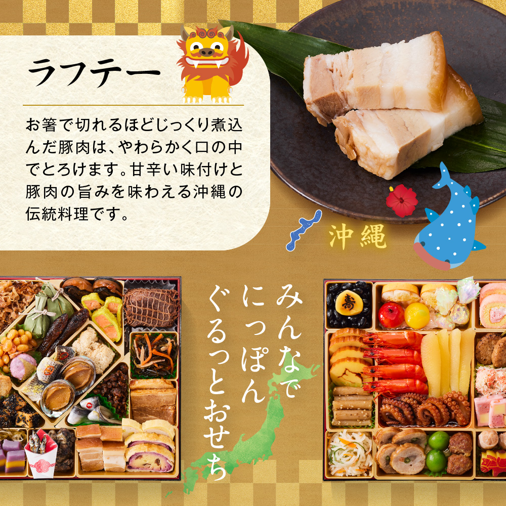 - 25.5cm×25.5cm×5.0cm×2段 / 材質:紙 / お品書き、解凍・保存方法案内付き