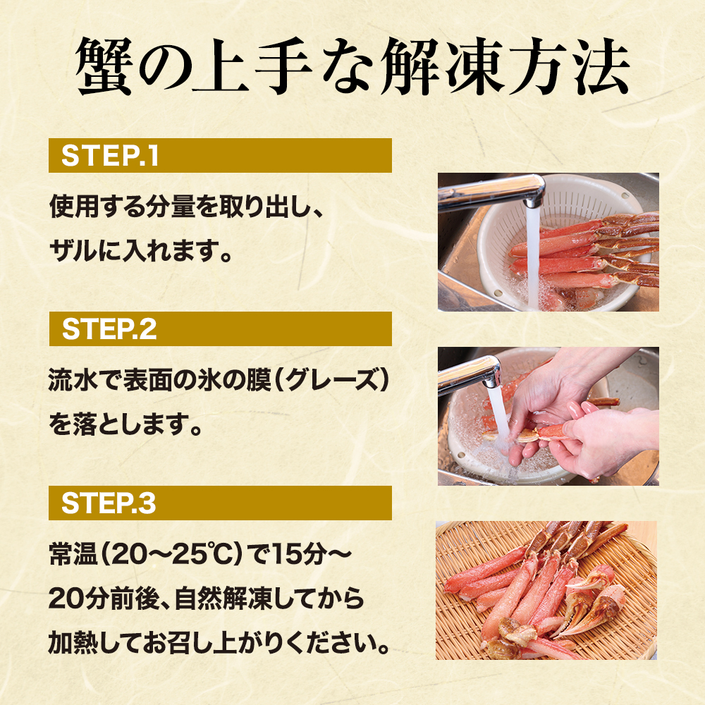 【1パックあたり】脚肉:6~8本、爪・爪下ハーフカット:3~6個、肩肉ハーフカット:4~8個
